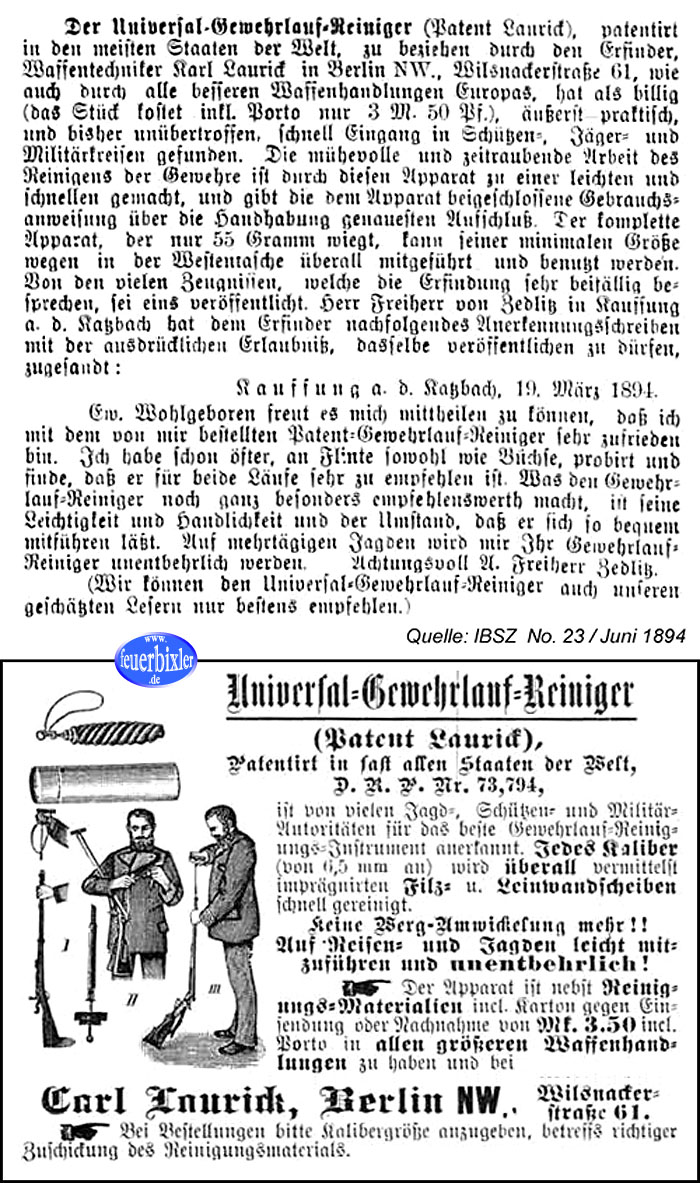 In diesem Abschnitt möchten wir immer mal wieder historisches Zubehör und Kurioses und auch interessante Kurzmeldungen zeigen, welche damals für Feuerstutzen oder Zimmerstutzen angeboten wurde. Es gab viele sinnvolle Zusatzerfindungen – aber auch kuriose Dinge, über die wir heute vielleicht lächeln... |
