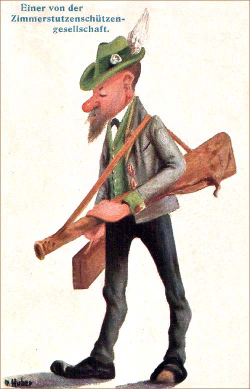 Ein Motiv zeigt „Einen von der Zimmerstutzen- schützengesellschaft“. Man möchte ja nicht glauben, dass das Motiv schon über 100 Jahre alt ist... ;-) .