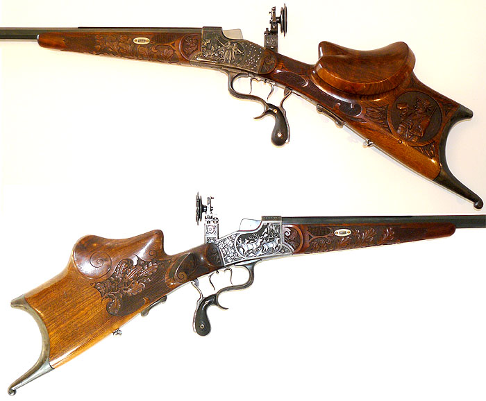 Dieser Büchel Meister wurde von der Firma Büchel in Zella-Mehlis im Jahre 1907 hergestellt. Der Lauf ist aus Krupp-Stahl im Kaliber Kal. 8.15x46R, der Stutzen hat Nitro-Beschuß. Typisch für diese Zeit waren die aufwändigen Schaftverschneidungen und Gravuren mit Eichenlaub. Scheibenstutzen in dieser Ausführung konnten sich nur Schützen mit ausreichendem Geld leisten. Quelle: Walter Gasteiger /Kufstein |