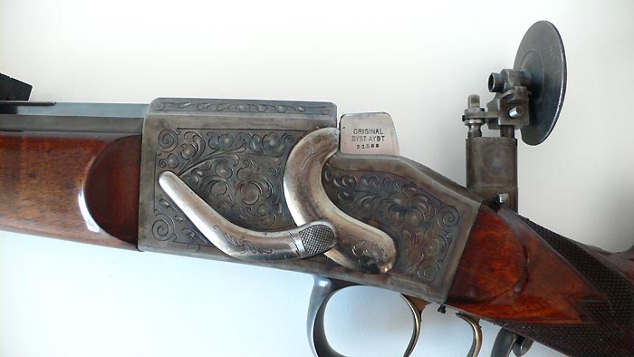 die besten Scheibenbüchsen von deutschen Waffenherstellern.  Sie ist vom System her eine Büchel Meister Luna und wurde im Jahre 1920 von E. F. Büchel in Zella-Mehlis hergestellt. Die Scheibenbüchse trägt die Nummer 4380 und hat einen 3-fach übersetzten Stecher. Der Lauf ist aus Kruppstahl gefertigt und der Schaft ist mit Tiroler Backe ausgestattet. Beschriftung oben: Büchel Original