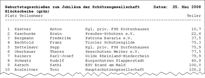 oder Geburtstagsscheiben sein. Im Normalfall hat jeder Schütze nur