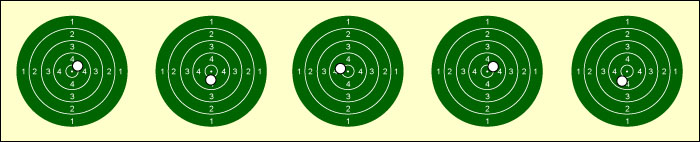 zweiten Scheibe der Serie, dass diese fünf Schuss zusammen gehören.