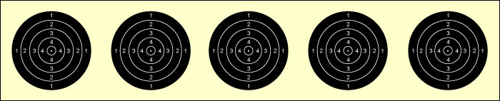 fünf Schuss. Ein solcher Scheibenstreifen in einer anderen Farbe für