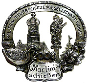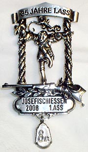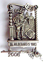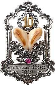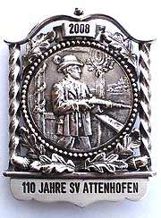 Seit vielen Jahren ist es nun schon ein schöner Brauch, auf den Traditionsschießen mit Feuer- und Zimmerstutzen auch echt silberne Hutnadeln auszuschießen. Diese sind schöne Erinnerungsstücke an die jeweilige Schießveranstaltung und zieren dann für Jahre den Hut des Traditionsschützen. Die Hutnadeln werden im Allgemeinen in vielen einzelnen Arbeitsschritten Stück für Stück handgefertigt und stellen einen hohen Wert dar. Die Motive werden meist passend zum jeweiligen Anlass gestaltet. Insbesondere Geburtstagshutnadeln werden ganz nach dem Wünschen des Gebers gestaltet. Somit ist jede Hutnadel ein kleines Kunstwerk und sie ist dem Traditionsschützen der liebste Gewinn! Diese Galerie erhebt keinen Anspruch auf Vollständigkeit oder exakte Chronologie, sie soll lediglich die schöne Vielfalt der Motive und Ausführungen zeigen. |