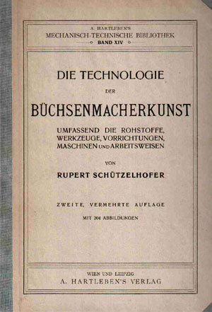 Die Technologie der Büchsenmacherkunst [1922]bgh • Das Handwerk der Büchsenmacher war bis zu Beginn des 2. Weltkrieges ein weitverbreiteter und hoch geschätzter Beruf. Eine lange Ausbildungs- und Lehrzeit sowie die Kenntnis von Material und Maschinen war unabdingbar, um präzise Sport- und Jagdwaffen herzustellen. Hierzu gab es ein Lehrbuch von Rupert Schützelhofer,