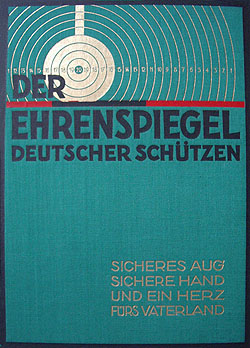 Auch das sportliche Schießen und der Beginn des Kleinkaliberschießens wird ausführlich beschrieben. Nachdem das Buch im Jahre 1938 erschienen ist, wird die Auflösung des Deutschen Schützenbundes ebenso erwähnt wie auch die Eingliederung aller Schützenvereine, -verbände und -organisationen in den Reichsbund für Leibesübungen. Die damals aktuellen Sportordnungen und Wettkampfordnungen können auch nachgelesen werden. Herausgeber: Dr. Wilhelm Ewald. Das reich bebilderte Buch hat 424 Seiten (Format 25x18cm) und beinhaltet einen zusätzlichen Teil mit Bildtafeln von 122 Seiten. Es ist in unterschiedlich ausgestatteten Ausgaben erschienen. Antiquarisch erhältlich. |