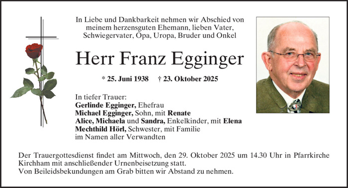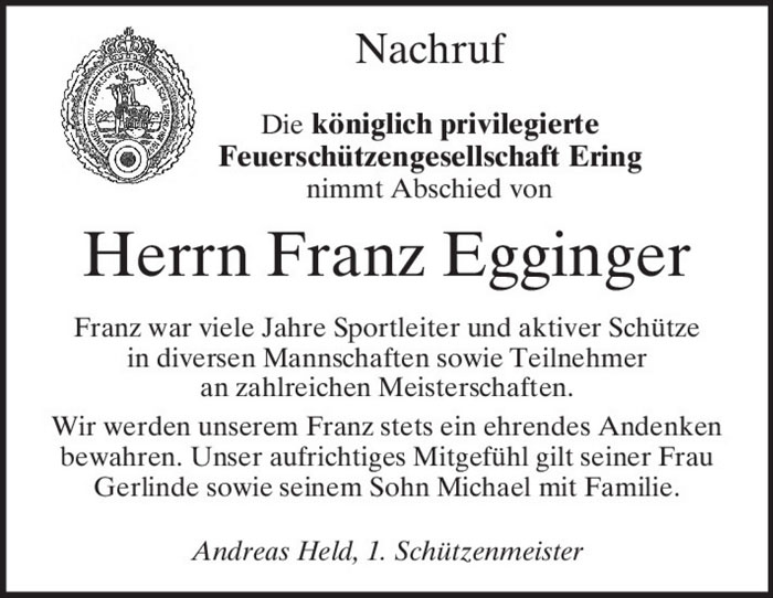 Die FSG Ering sowie die Schützen, Freunde und Verwandte trauern um Franz Egginger 1938 – 2025 . |