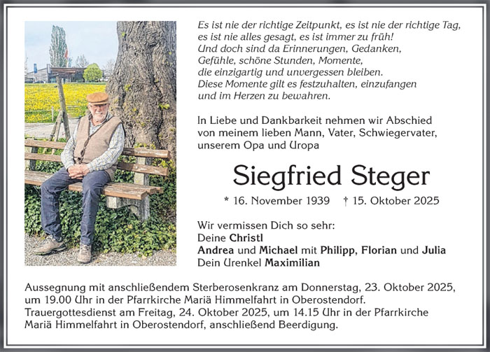 Siegfried Steger * 16. November 1939 ~ † 15. Oktober 2025 |