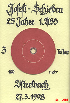 Doch eigentlich hatte das Kranzl-Schießen bei den früheren Zimmer- und Feuerstutzenvereinen eine andere Bedeutung, man sprach auch von „ein Kränzchen geben“. Schon in der „Allgemeinen Schützenordnung für das Königreich Bayern“ für Feuerschützengesellschaften aus dem Jahre 1868 steht unter § 51 folgendes: Kränzchenschießen (Kränzelschießen) sind Schießen, bei welchem sämmtliche theilnehmende Schützen nach vorherigem Uebereinkommen abwechselnd (in einer bestimmten Reihenfolge) die Besten geben. Auch bei bayerischen Zimmerschützen-Gesellschaften war das Kranzl-Schießen damals ein beliebter Brauch. Nachdem man sich um 1893 herum auch im hohen Norden für das Zimmerstutzenschießen interessierte, fragte ein Verein aus Kiel bei der Bayerischen Schützenzeitung um die Modalitäten von Schießabenden nach. Hier wurde u.a. folgendes erläutert: In den Wintermonaten werden in den verschiedenen, weit über Hundert zählenden Schützenvereinen sogenannte „Kränzlschießen“ abgehalten, welche derart arrangiert sind, daß alle Wochen an den Schießabenden ein Vereinsmitglied der Reihenfolge nach die Preise – gewöhnlich 5-6 – zum Ausschießen zu geben hat, wodurch jedes Mitglied nach dem Bestschuß dieselben gewinnen kann, und zwar derart, daß auch ungeübtere Schützen berücksichtigt werden, indem jedes Mitglied einmal den ersten Preis gewinnen muß, ebenso – mit beschränkter Bestimmung – den zweiten. Ferner sind alle übrigen Preise jedesmal von einem Schützen zu gewinnen. So war dies eine schöne Einrichtung, mit der sicherlich bei jedem Schießabend eine große Zahl an Schützen angelockt werden konnte und der Verein selbst nicht für die Auspreisung zu sorgen hatte. |