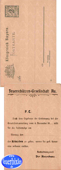 Informationspostkarte über das Ausrichten eines Kränzchens (ca. 1905) der Feuerschützen-Gesellschaft Au/Hallertau |