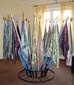 ein Seidentuch an einer Art Fahnenstange erhält.